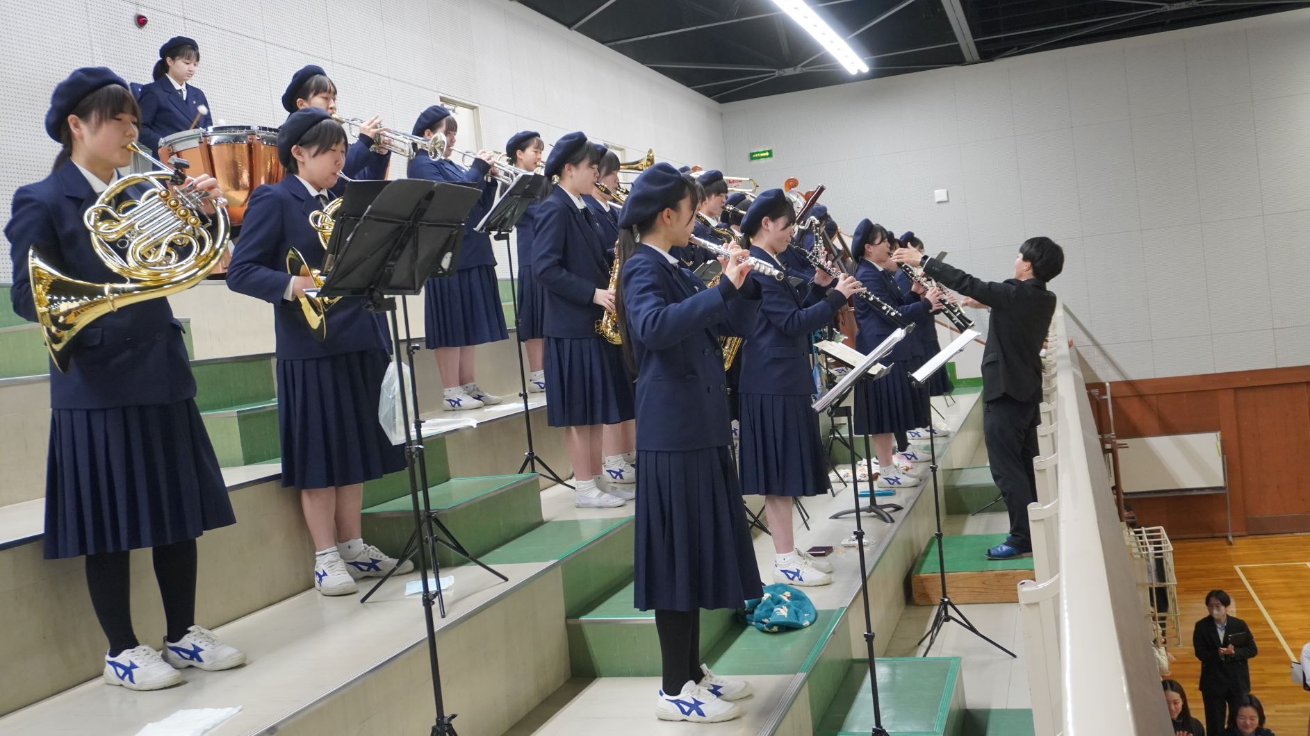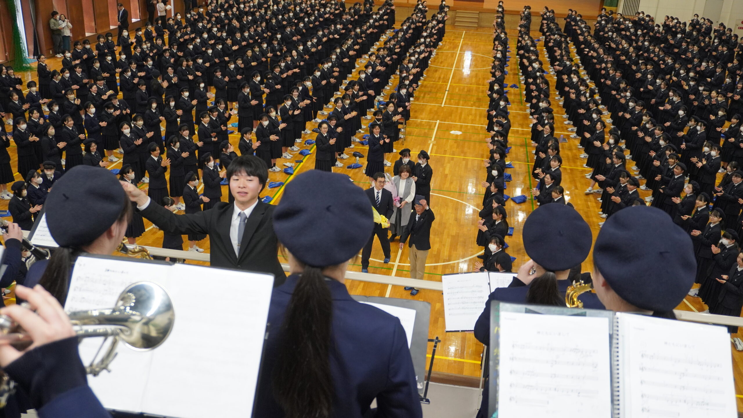 吹奏楽部の生演奏と共に大きな拍手でお送りいたしました。